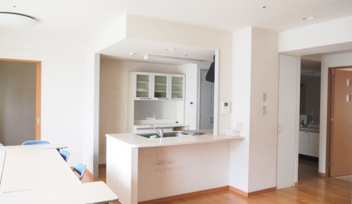 ホーム・ホームで食事作りをする際に子ども達と一緒に調理できるよう、オープンキッチンにしています。
