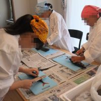 すごーく新鮮な鰺(あじ)を料理人さんが持ってきてくれました。 本日のメニューは、鰺フライ(新鮮野菜添え)、鰺の刺身、味噌汁(大根・人参)でした。 世の中の中高生で、魚の三枚おろしが出来る人がどれだけいるでしょうね。 プロの手ほどきで習うことが出来る「ど根性料理塾」の塾生はラッキーですよね。
