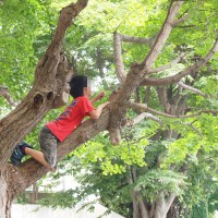 木登り中。「おーい、何かいるよ」