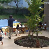 今日は、エンジェル達がお外でお昼ご飯。楽しいね。美味しいね。 メニューはホットドッグでした。