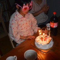 ハッピーバースデーの歌の中で、ローソクを消すよ。