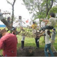YMCAのお兄さんやお姉さんとキャンプを楽しみました。ハンモックやカレーライスつくり、もちろん、キャンプファイヤーもね。