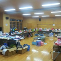 いよいよ、明日が聖母愛児園バザーです。 今日のお天気は、小雨が降ったり良くないのですが、明日は、良い天気でありますように! 朝から、職員は、準備で大忙しでした。 本日、午後4時半頃の前日の様子です。