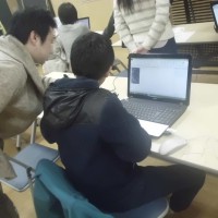 「お兄さん、ここ、どうやるの。」「どれどれ」