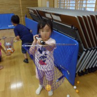 卓球の練習です。 みんな、はりきって練習しています。 さぁ、サーブするわよ。