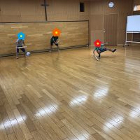 この日はボールと新聞紙の棒を使ってホッケーのような ゲームをしていました。