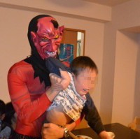 毎年、男子職員が恐い鬼に扮して突然現れます。
