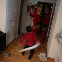 鬼が来ると怒って逃げ回り、豆を投げるように促すが、「お前がやれよ!」と言っていました。最後は、鬼に向かって行っていました。「俺がやっつけた」と満足気。恵方巻は食べきりました。