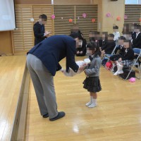 施設長さんから入学する子どもたちに記念品贈呈です。