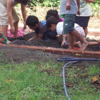 「砂遊びが出来る砂場は必要だよね」と男子職員が、手作りで砂場を作ってくれました。