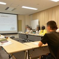 その後横浜ポートフォーの方から、概要や活動内容の説明があり、具体的には、利用者の体験を交え巣立ちセミナーについての説明、インターシップ先の紹介、入所中・退所後に渡って居場所として利用が出来る事など話がありました。
