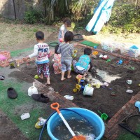 エンジェルたちの砂遊びの様子です。 大人は、道具を用意するだけ、あとは、エンジェルたちが自由に発想します。 楽しそうですね。